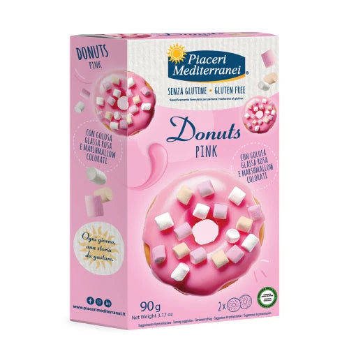 Donut mit pinker Glasur Marschmallows 90g - Piaceri Mediterranei Der lebhaft bunte Donut-Kuchen aus zartem Rührteig überzeugt nicht nur durch seine...