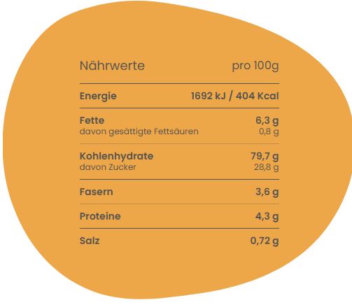 Reismehl, Zucker, Maisstärke, Maismehl, Sonnenblumenöl mit hohem Ölsäuregehalt, Pflanzenfasern (Bambus), Sojamehl , Emulgator: Sojalecithin ; Salz, karamellisierter Zucker, Kakaopulver, natürliches Aroma.